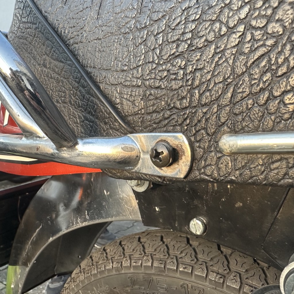 Linsenkopfschraube mit Kreuzschlitz M6x16 DIN 7985/275 schwarz verzinkt und Scheibe 6,4 DIN 125/400 schwarz für den Gepäckträger an 521/529/530er Modellen. Wie Original mit leicht grünlichem Schimmer.