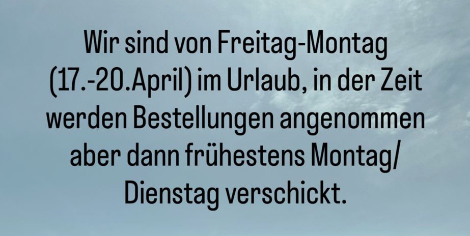 Bei Arbeitsaufträgen ist mit längeren Wartezeiten zu rechnen, Warenbestellungen werden direkt nach Zahlungserhalt verschickt.