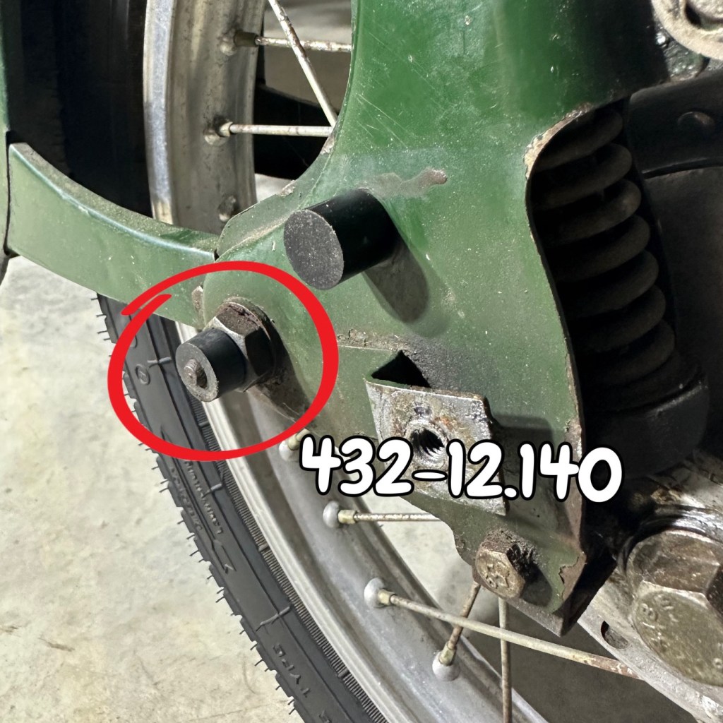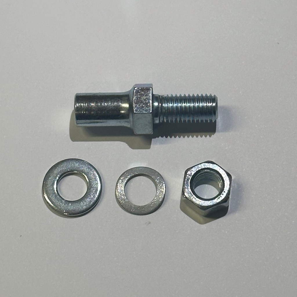 Lenkanschlag 561-19.104 für R50/RS50 Roller. Unser Nachbau ist hergestellt aus vergütetem Stahl (21Cr MoV5-7) und verzinkt. Daher am besten mit Alupaste einbauen um Korossion zu verhindern. Durch das verwendete Material hat der Bolzen die Eigenschaften (Zugfestigkeit und Dehnfestigkeit/ Streckgrenze) einer 8.8er Schraube, wodurch die Dehnfestigkeit mehr als doppelt so hoch ist wie bei Nachbauten aus VA/Edelstahl. Maße sind wie beim Original, ebenfalls das M7er Gewinde und SW11. Der Lenkanschlag wird mit passender Scheibe, Mutter M7 DIN934/440 und Federscheibe als Satz geliefert. Original war ein Federring statt der Federscheibe verbaut, aber die wurden aus der DIN genommen, da sie sich als wirkungslos erwiesen hatten.