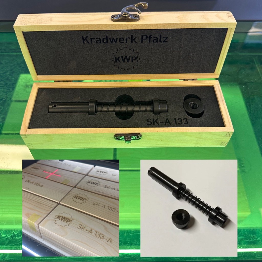 Original KWP Spezialwerkzeug SK-A 133-A, wir haben das Werkzeug wieder eingeführt, wir haben das Original (133 A weil es abgeändert wurde) Die ursprüngliche Version wurde nämlich nur bis zu den frühen 267er Motoren verwendet. Das Werkzeug kann dank der extra Hülse nicht nur für 15/17mm Kurbelwellen, sondern auch für 15/15mm Kurbelwellen verwendet werden.